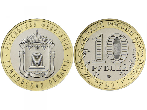 Биметаллическая монета 10 рублей Тамбовская область была выпущена Московским монетным двором (ММД) в 2017 году и приурочена к серии «Российская Федерация».
